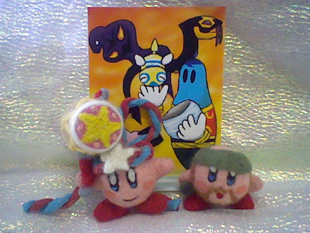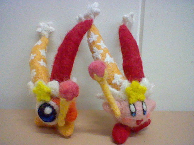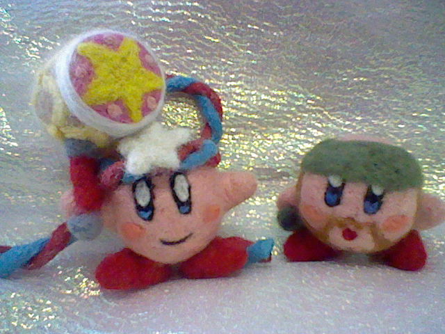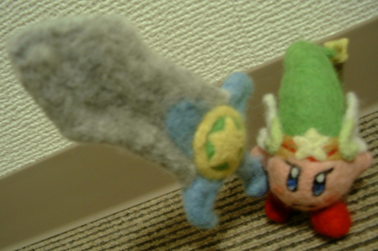 ミラクルビーム、3年前ぐらい。いま見ると作り込みもまだまだ甘いですね、カービィの大きさはこの頃で3cmぐらいまだ少し小さめです。古い付き合いのワドルドゥ好きさんのへのプレゼントでもあったので同じ帽子をかぶせてみました。
