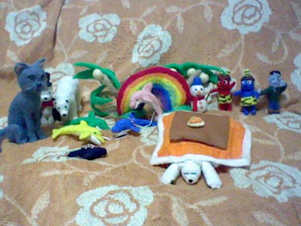 最後に今まで作ったものを、通常形態のマホロアであればさほど難しくはありませんので人形が欲しいという方はぜひ羊毛フェルトに挑戦してみるのはいかがでしょうか、不器用な自分でもここまでになりました。まずはカービィなど球体系を作ってみるのをおすすめします。
